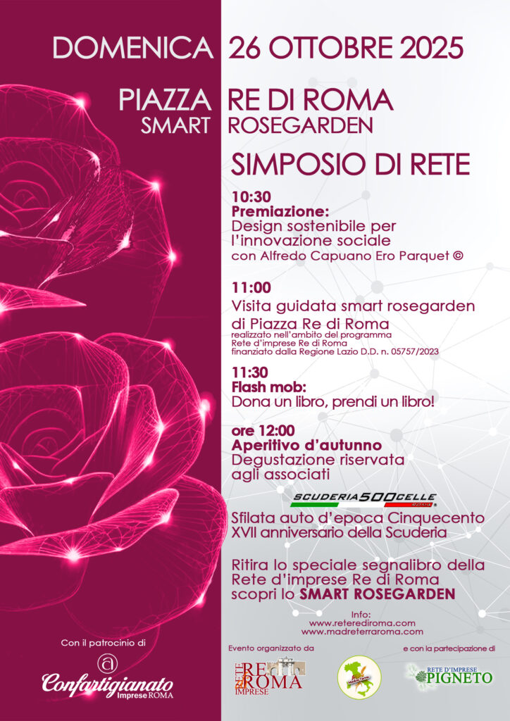E’ prevista la partecipazione di cariche istituzionali municipali e regionali. L’evento è patrocinato da Confartigianato Imprese Roma che ha assistito la Rete nella realizzazione del Programma finanziato dalla Regione Lazio (D.D. n. 05757/23). Sono invitati a prendere parte all’evento gli aderenti alle Rete d’imprese Re di Roma e rappresentanti delle altre reti d’impresa di Roma e del Lazio.